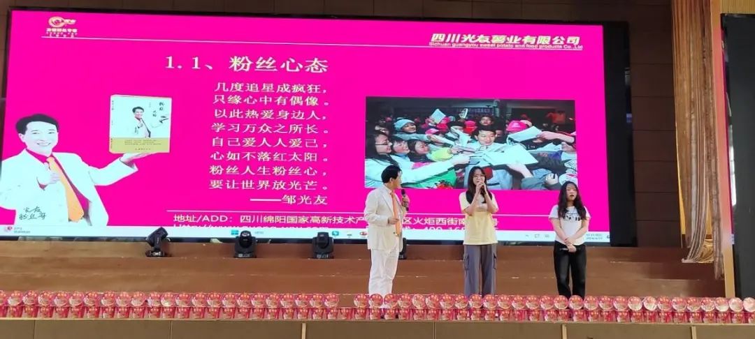 鄒光友董事長(cháng)以粉絲如何讓人生更精彩?怎樣打造自己的金飯碗?從成功心態(tài)萬(wàn)事成、辭官下海賣(mài)紅薯、管理模式共分享、人生精彩粉絲路四大板塊講述自己32年來(lái),用一根紅薯加500元創(chuàng )立并發(fā)展光友薯業(yè)的傳奇故事。