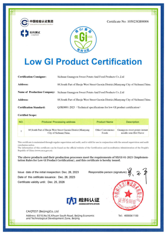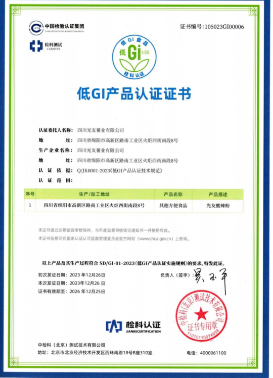 光友薯業(yè)對此次酸辣粉獲得低GI認證表示非常榮幸和自豪,光友薯業(yè)表示,將繼續秉持“健康、美味、創(chuàng )新”的理念,不斷推出更多符合消費者需求的健康食品,為人們的健康生活貢獻更多力量。