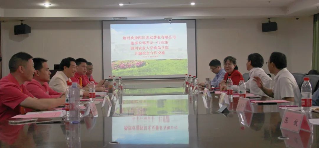 校企深化戰略合作交流座談會(huì )率先召開(kāi),四川農業(yè)大學(xué)食品學(xué)院黨委副書(shū)記湯瑞瑞主持,雅安市政協(xié)副主席李誠、四川農業(yè)大學(xué)工會(huì )專(zhuān)職副主席和教代會(huì )副主席楊志鋼、四川農業(yè)大學(xué)食品學(xué)院食品科學(xué)與工程系主任李美良、四川農業(yè)大學(xué)食品學(xué)院食品質(zhì)量與安全系主任劉愛(ài)平、四川農業(yè)大學(xué)食品學(xué)院食品營(yíng)養與健康系主任陳洪、四川農業(yè)大學(xué)食品學(xué)院黨委辦公室陳放出席參會(huì ),四川光友薯業(yè)董事長(cháng)鄒光友攜成都營(yíng)銷(xiāo)中心總經(jīng)理沈開(kāi)華、市場(chǎng)開(kāi)發(fā)部總經(jīng)理羅欽、人力資源研發(fā)部部長(cháng)崔樹(shù)龍、雅安經(jīng)銷(xiāo)商等共同參會(huì )。