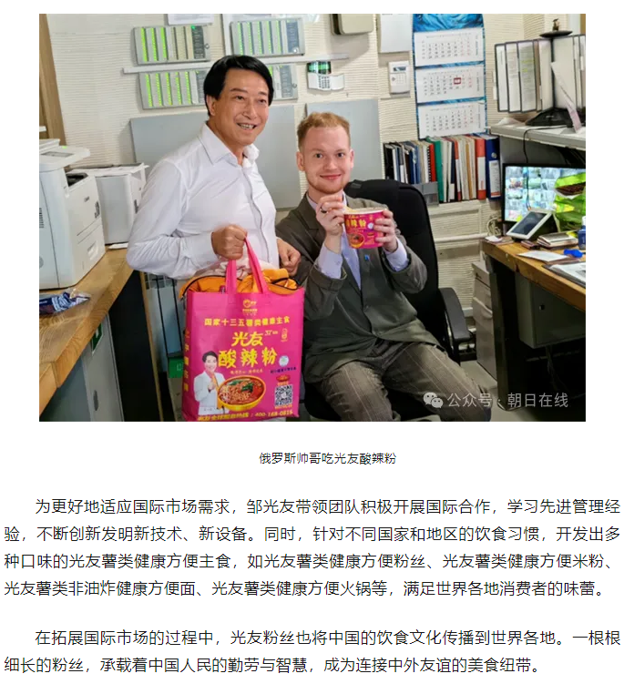 轉載朝日在線(xiàn)——鄒光友33年專(zhuān)注一根紅薯粉絲 暢銷(xiāo)全世界