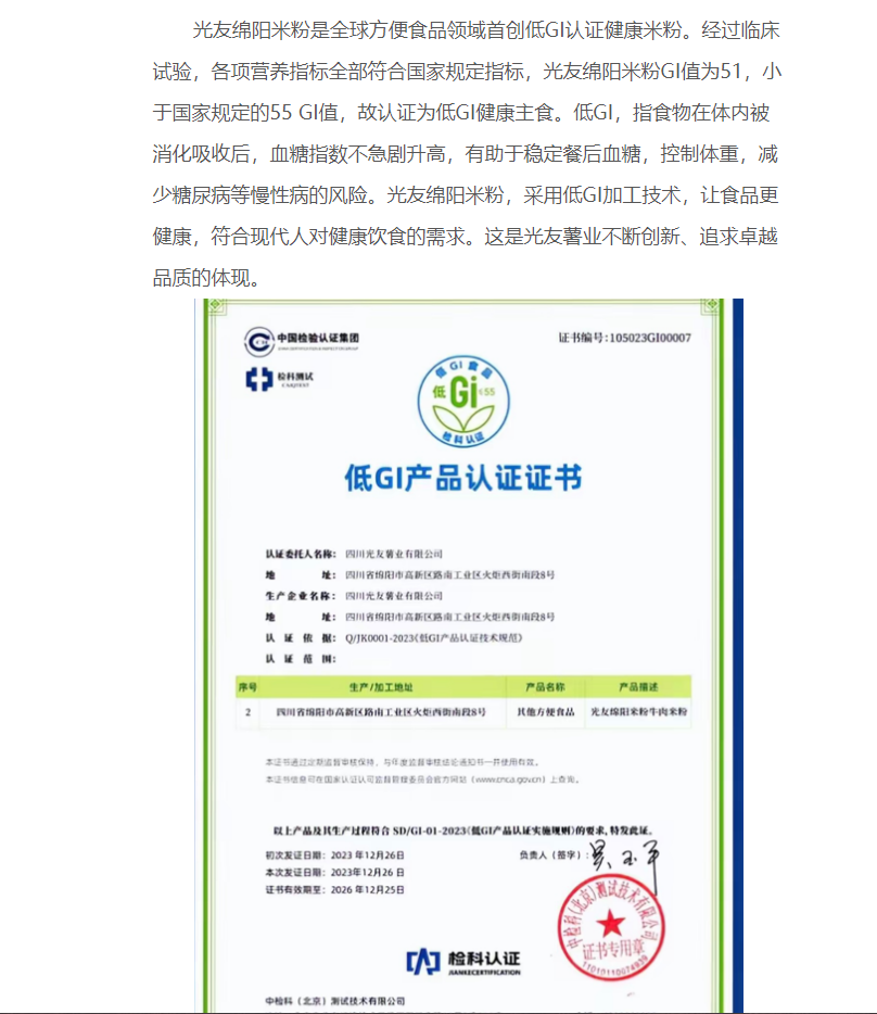 轉載中國食品新聞網(wǎng)——光友綿陽(yáng)米粉“低GI健康好主食新聞發(fā)布會(huì )”在京舉行